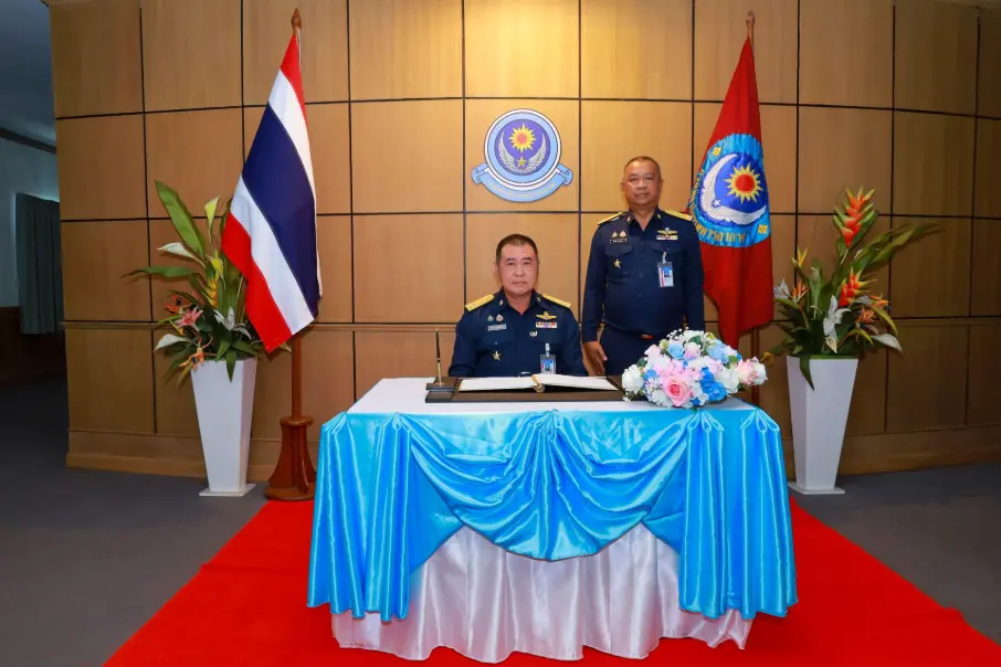 พลอากาศตรีศักดิ์ดา รัตนแสง เจ้ากรมพลาธิการทหารอากาศ ให้การต้อนรับ พลอากาศโท อิทธิกร พงศ์อัจฉรีย์ ปลัดบัญชีทหารอากาศ และคณะ