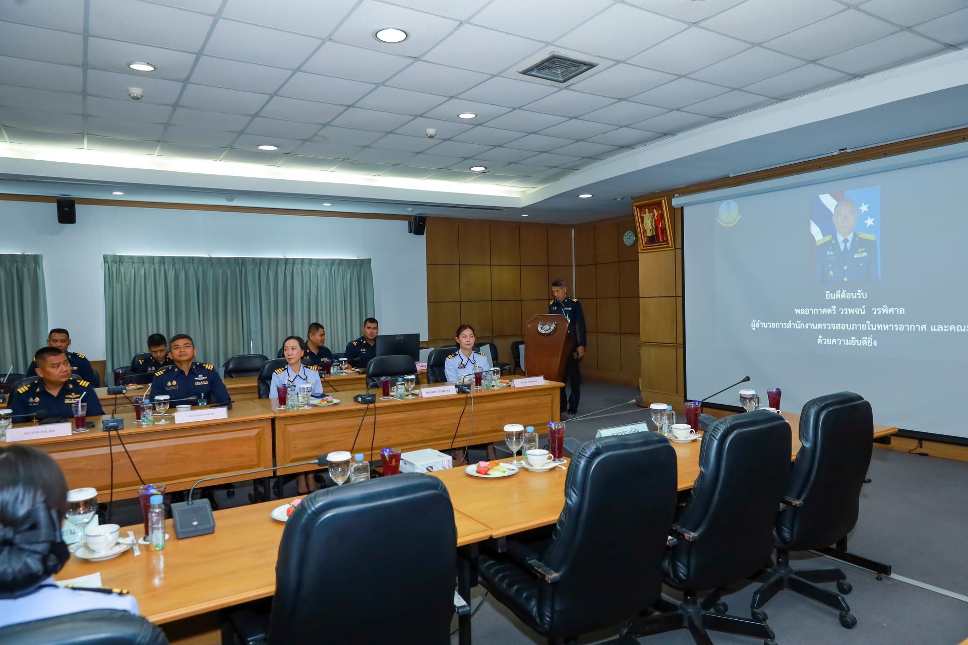 พลอากาศตรี ศักดิ์ดา รัตนแสง เจ้ากรมพลาธิการทหารอากาศ ให้การต้อนรับ พล.อ.ต.วรพจน์ วรพิศาล ผู้อำนวยการสำนักงานตรวจสอบภายในทหารอากาศ และคณะ
