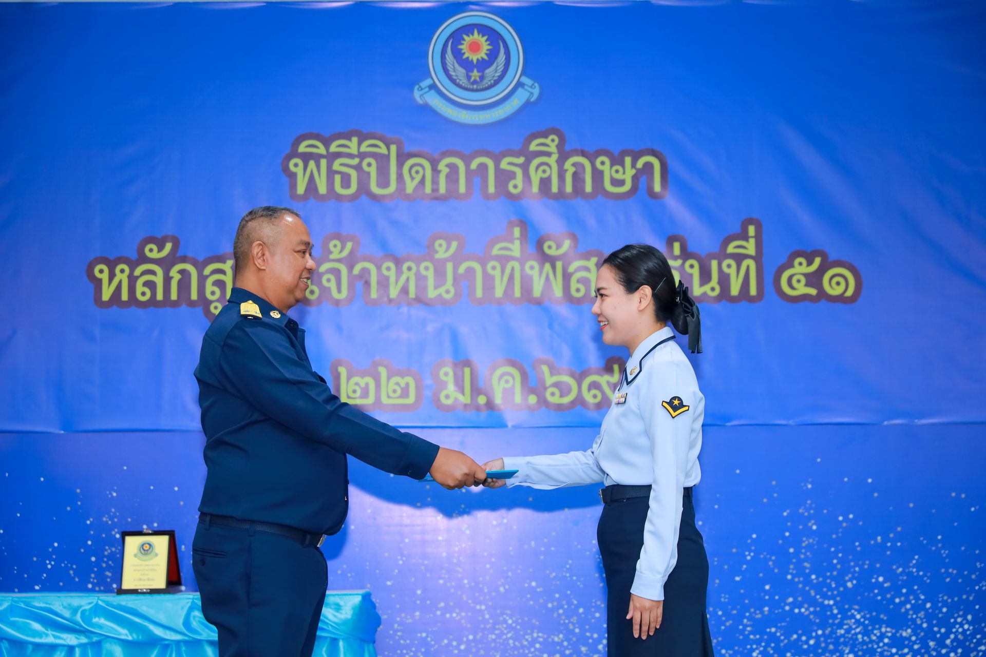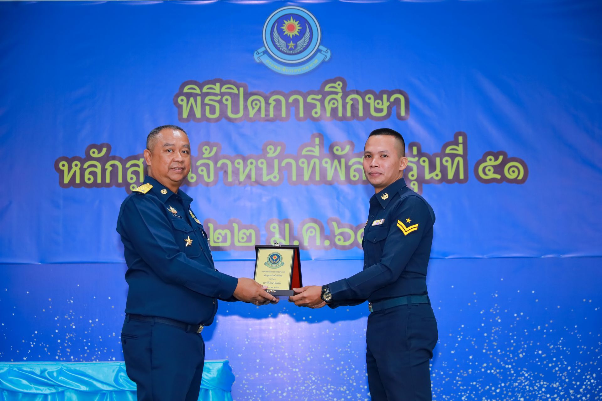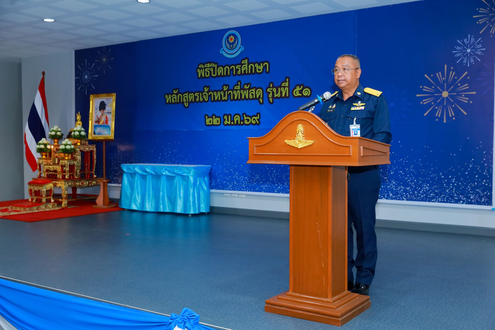 พลอากาศตรี ศักดิ์ดา รัตนแสง เจ้ากรมพลาธิการทหารอากาศ เป็นประธานในพิธีปิดการศึกษาหลักสูตรเจ้าหน้าที่พัสดุ รุ่นที่ ๕๑