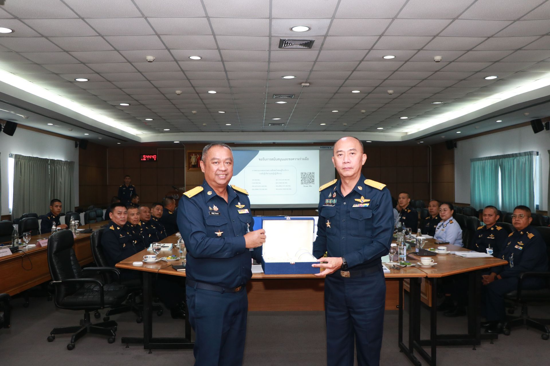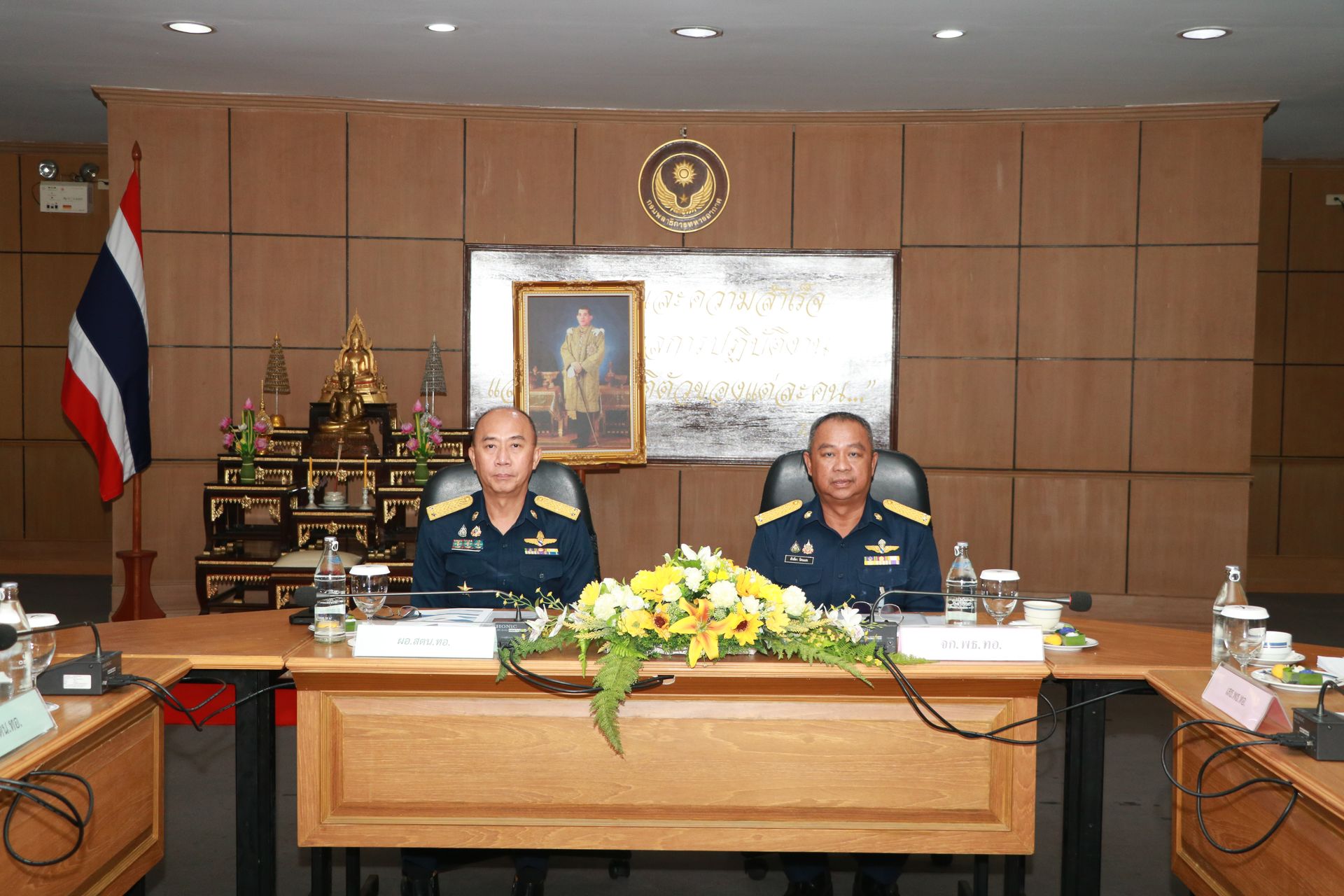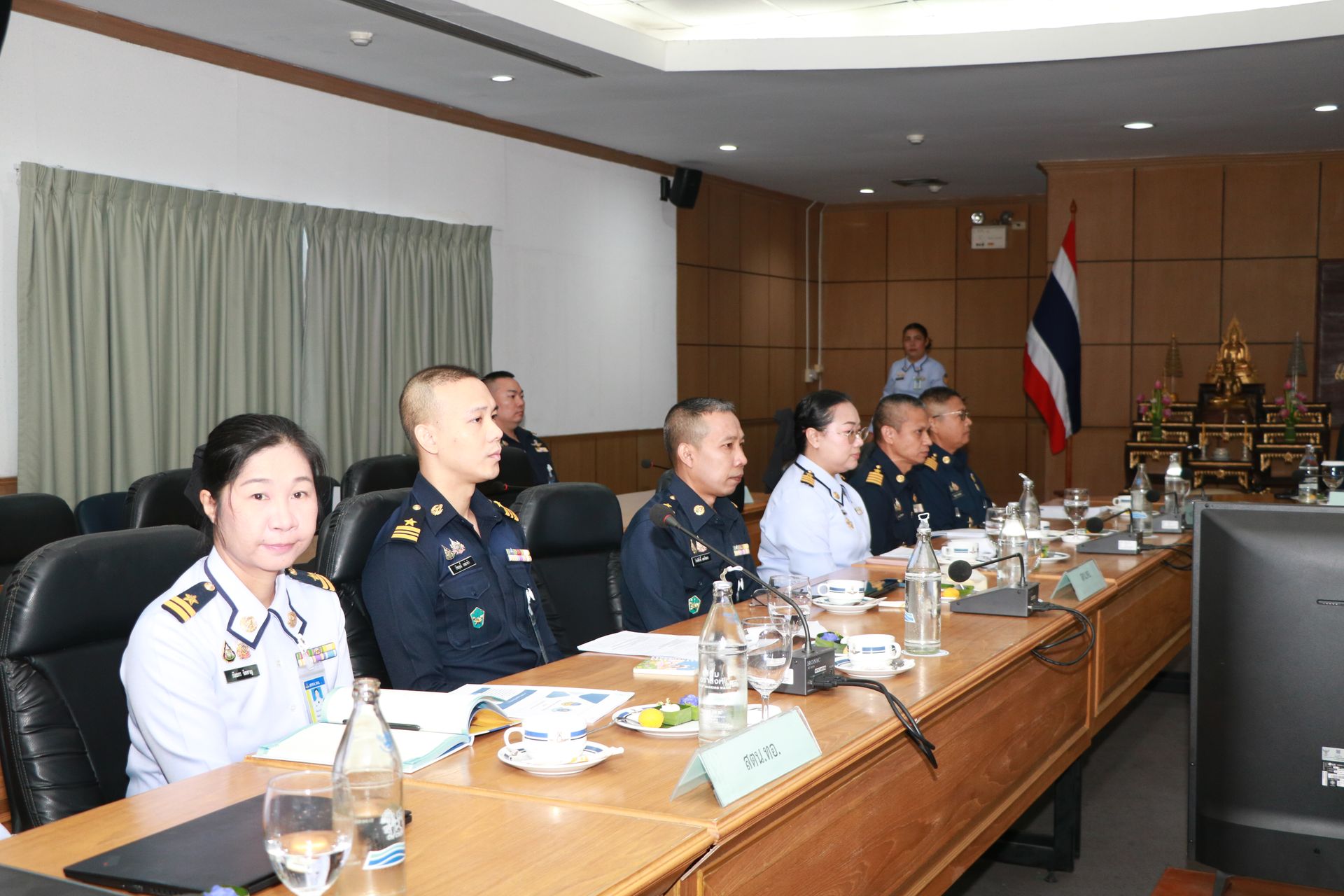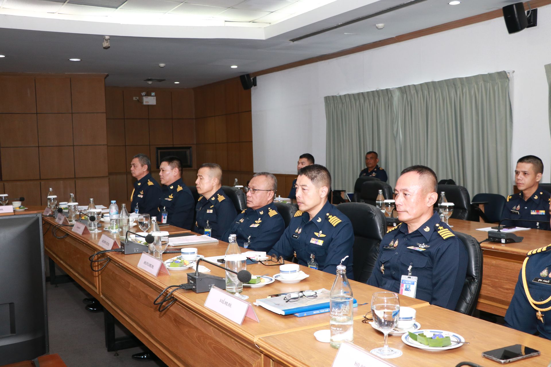 พลอากาศตรี ศักดิ์ดา รัตนแสง เจ้ากรมพลาธิการทหารอากาศ ให้การต้อนรับ พล.อ.ต.วรพจน์ วรพิศาล ผู้อำนวยการสำนักงานตรวจสอบภายในทหารอากาศ และคณะ ในโอกาสแถลงสรุปผลการตรวจสอบภายในของกรมพลาธิการทหารอากาศ ประจำปีงบประมาณ ๖๙ เมื่อวันจันทร์ที่ ๙ กุมภาพันธ์ พ.ศ.๒๕๖๙ ณ ห้องประชุม พธ.ทอ.๑